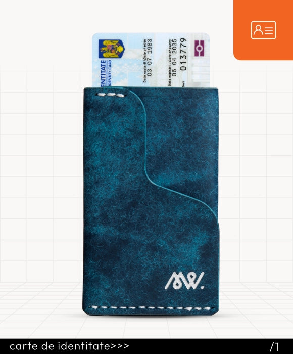 Portofel ultra-compact, conceput pentru noul buletin românesc și carduri. Realizat din piele naturală premium, full-grain, tabăcită vegetal, cusut manual și finisat individual. Extrem de subțire și gândit să dispară complet în buzunar.